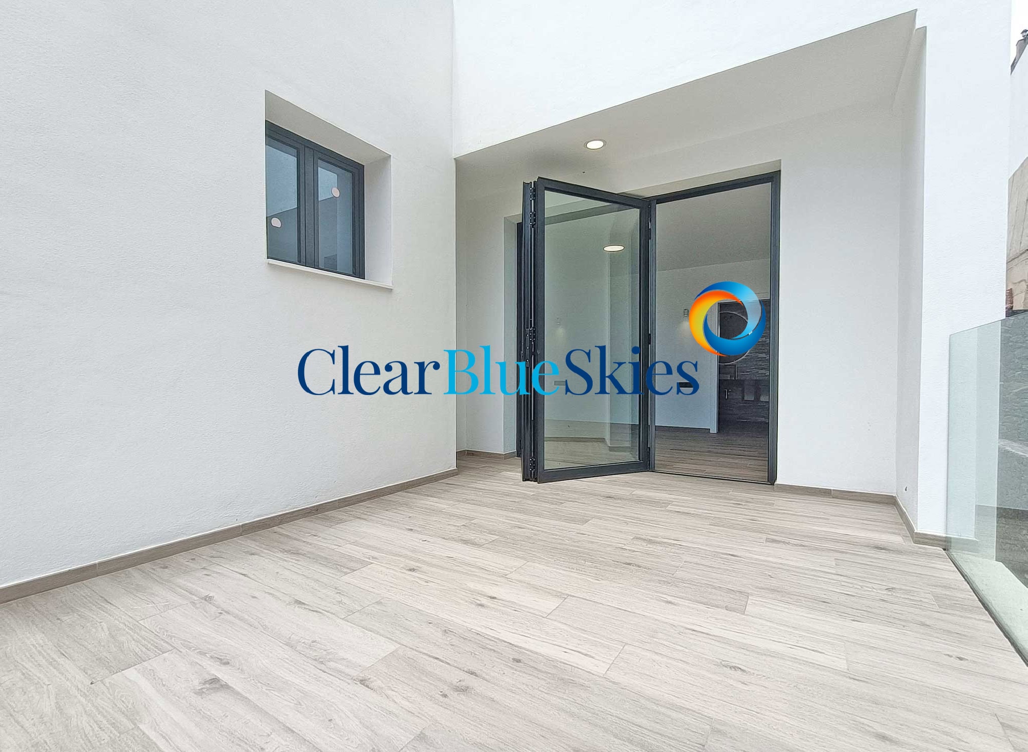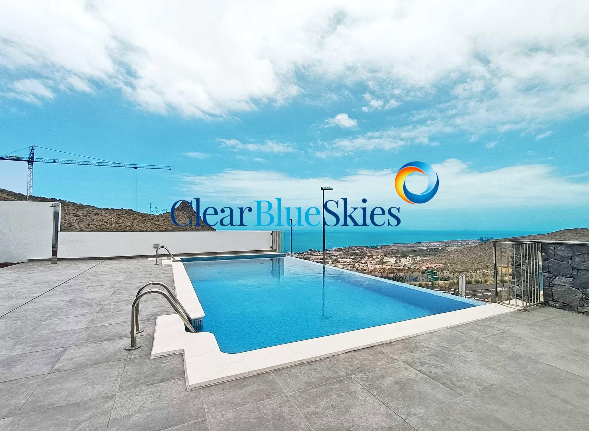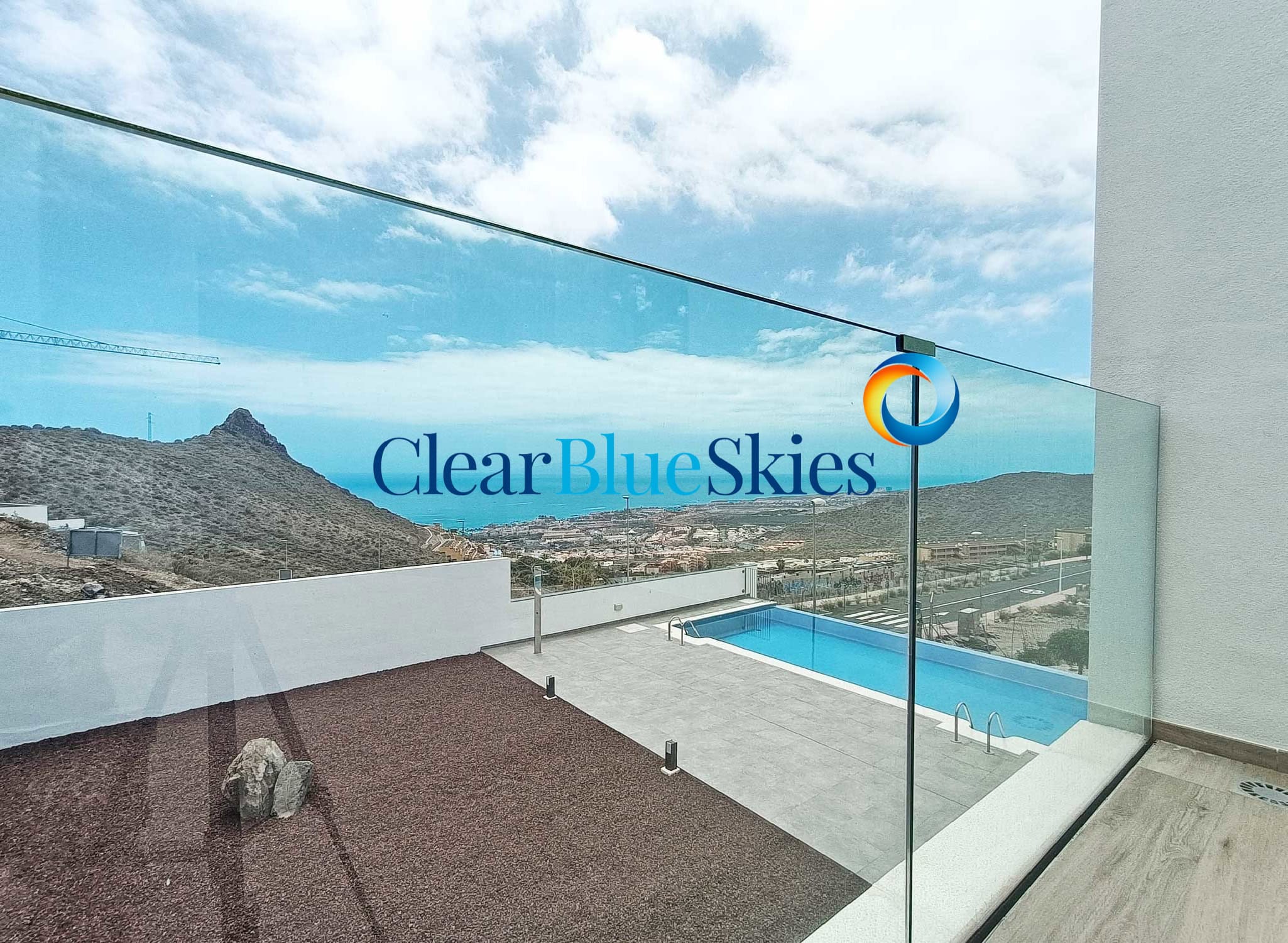The property comes with pre-installation for both air conditioning and swimming pool heating as well as wood effect flooring on the upper level and integrated lighting throughout. This stylish villa is ready to be purchased and for the new owner to add the finishing design touches to their personal taste, making a stunning family home or luxury holiday residence. Please contact Clear Blue Skies at our nearby office in Fañabé Plaza to obtain more information and to arrange a viewing appointment.