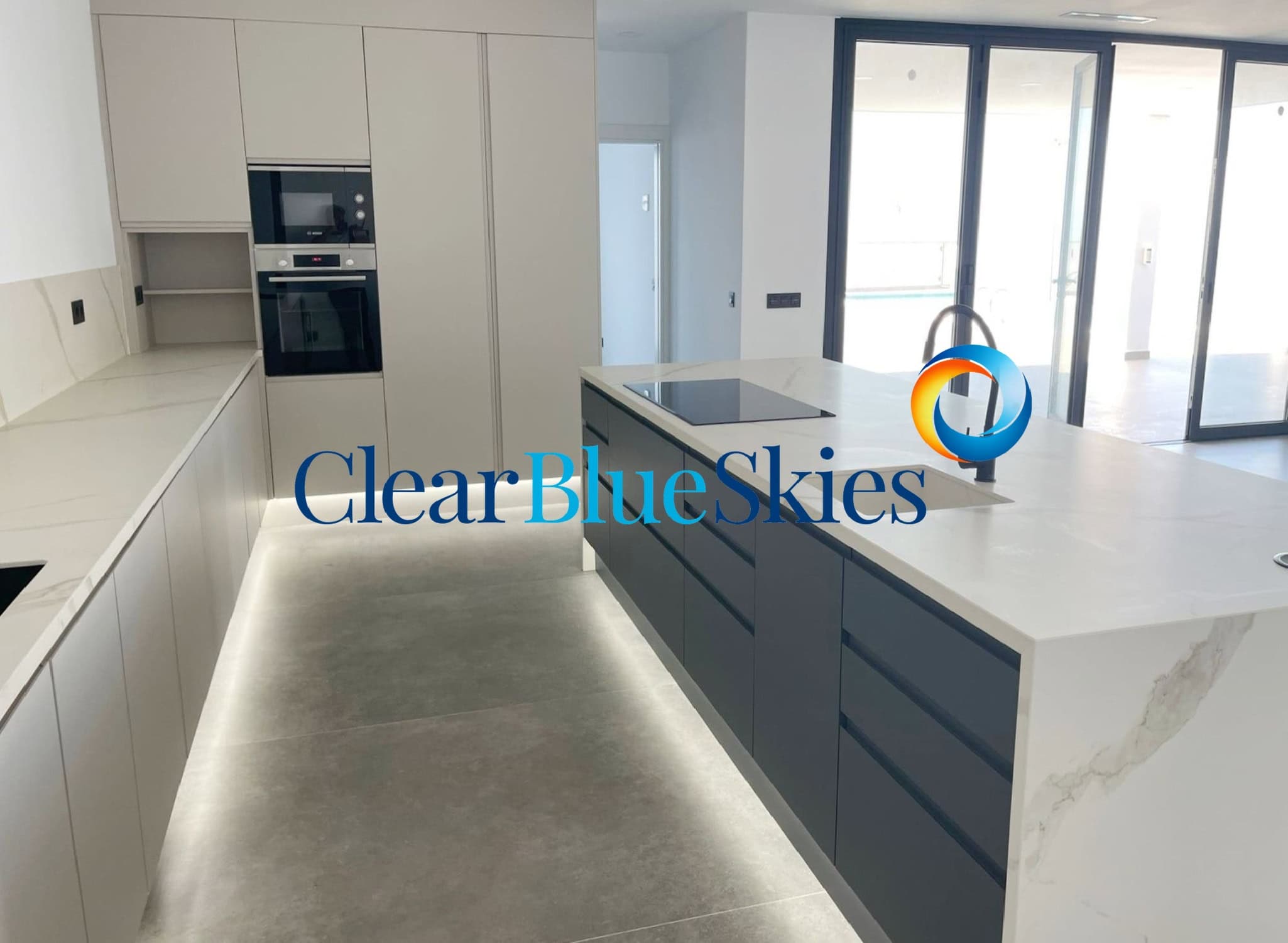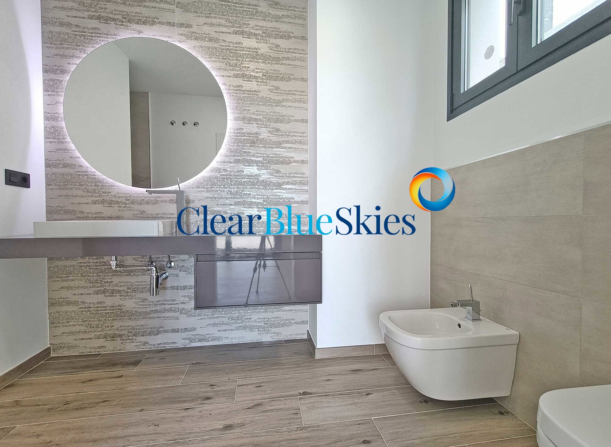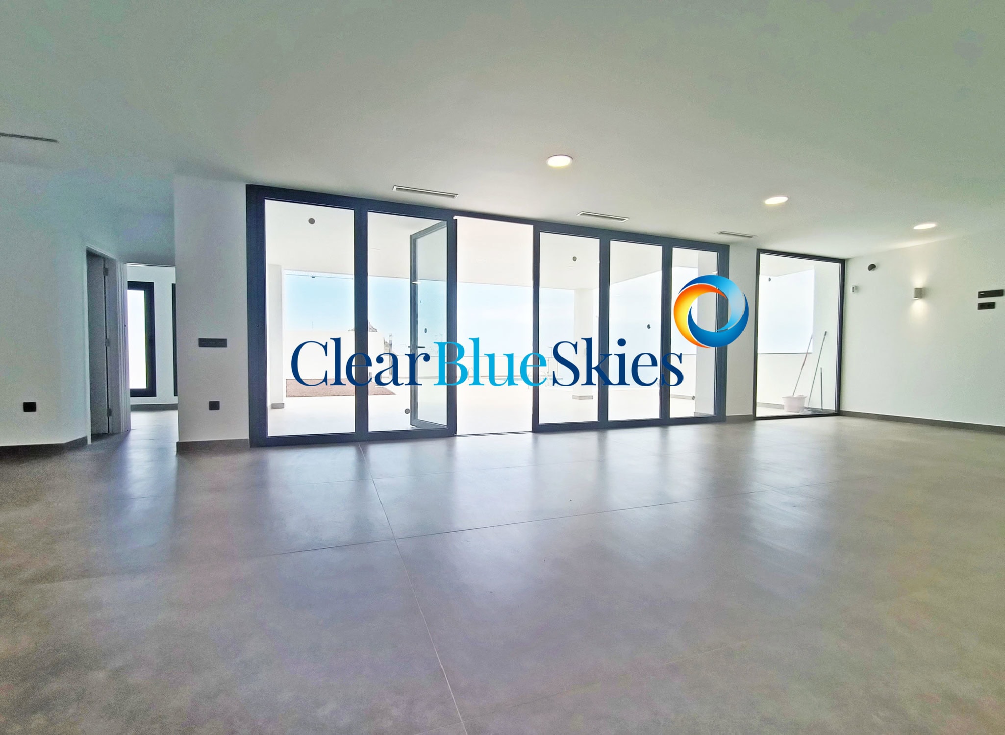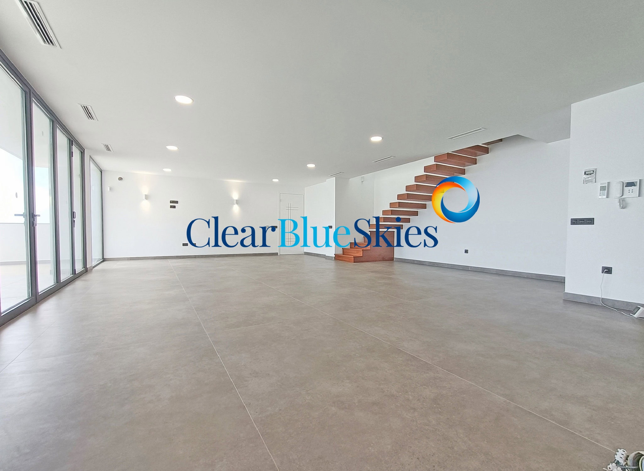 The property comes with pre-installation for both air conditioning and swimming pool heating as well as wood effect flooring on the upper level and integrated lighting throughout. This stylish villa is ready to be purchased and for the new owner to add the finishing design touches to their personal taste, making a stunning family home or luxury holiday residence. Please contact Clear Blue Skies at our nearby office in Fañabé Plaza to obtain more information and to arrange a viewing appointment.