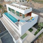 Set on a plot of 800m², this contemporary property is in the finishing stages of construction and is distributed over 4 levels, including a large ground level with ample garage and storage area, cinema room, laundry room and two bedrooms, all enjoying plenty of natural light from two courtyard areas. The layout of this level could also be very easily adapted to incorporate a separate guest apartment. The further four bedrooms, including the stunning master suite, are located on the first floor. All have terrace access and are en-suite, with the master featuring both indoor and outdoor showers, a designer dressing room and sunken jacuzzi on its terrace. The main living area is located on the highest internal level and will be a stunning open concept space featuring a top quality kitchen with central island, which will flow seamlessly to the incredible terrace featuring an infinity style pool, bbq, dining space and chill out area all enjoying fabulous ocean views. The villa is finished with a fabulous rooftop terrace fitted for optional entertaining bar, sunset lounge and private cabanas, and where the views are simply sublime.