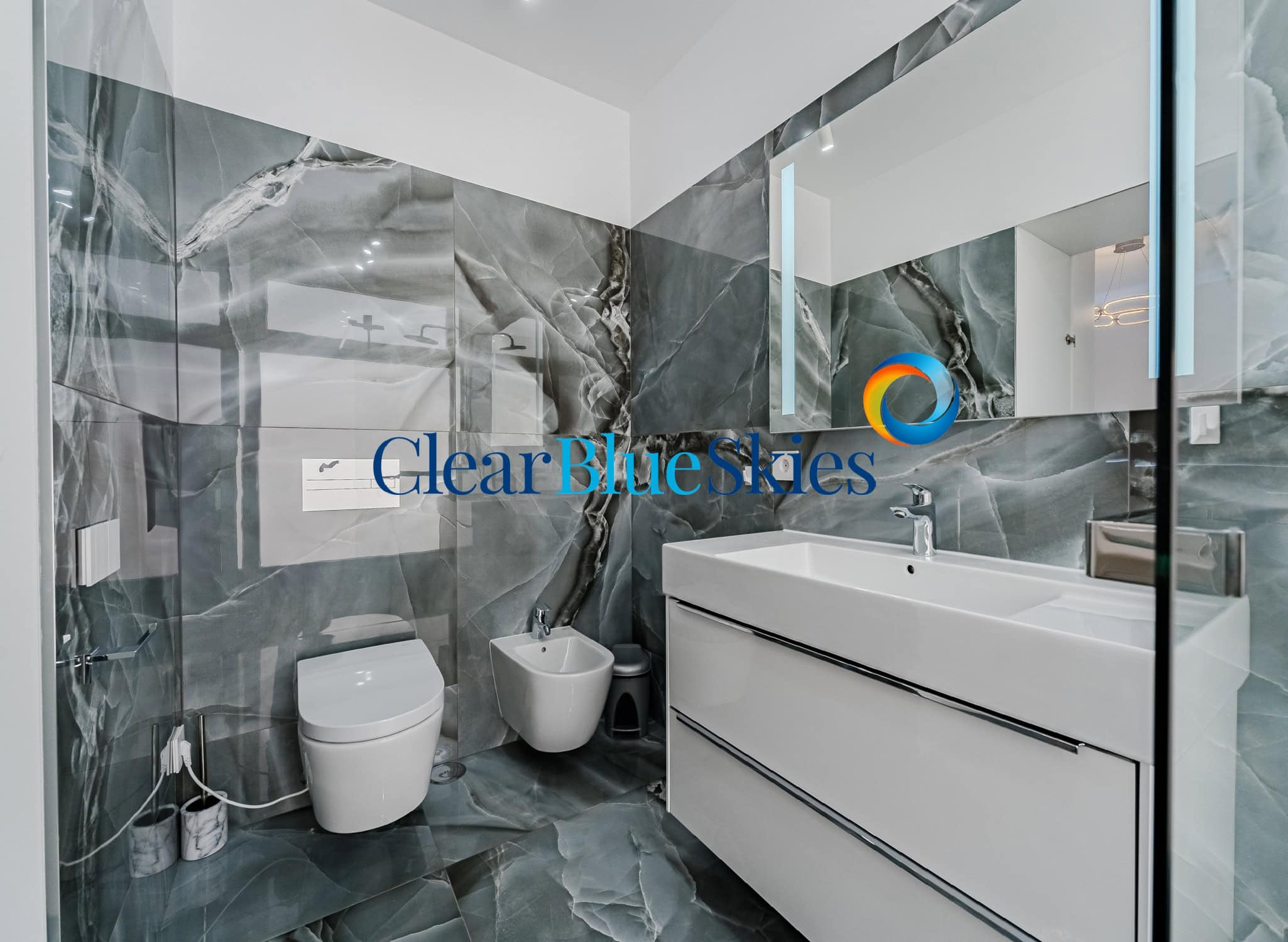 This luxurious villa has a living area of 158m² and has been renovated throughout using the highest quality materials, fixtures and finishings. Offered fully furnished, the main living area of this attractive villa is spread over one floor and flooded with natural light. Consisting of a comfortable living room and dining area, with floor to ceiling glass doors to access the stunning pool area, a semi-independent kitchen incorporating white high gloss units & integrated appliances as well as three double bedrooms; all of which have en-suite bathrooms, fitted wardrobes and air-conditioning. External stairs lead down to the lower level where you will find the fourth en suite bedroom plus an additional room ideal as a 5th bedroom or office and a guest toilet.