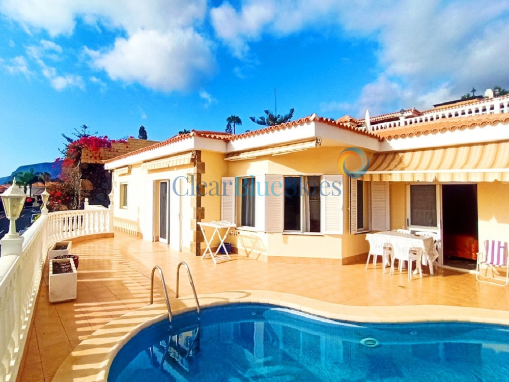 Clear Blue Skies is pleased to present this attractive detached villa with private pool in a quiet location close to both Puerto de Santiago and Los Gigantes on the sunny west coast of Tenerife.