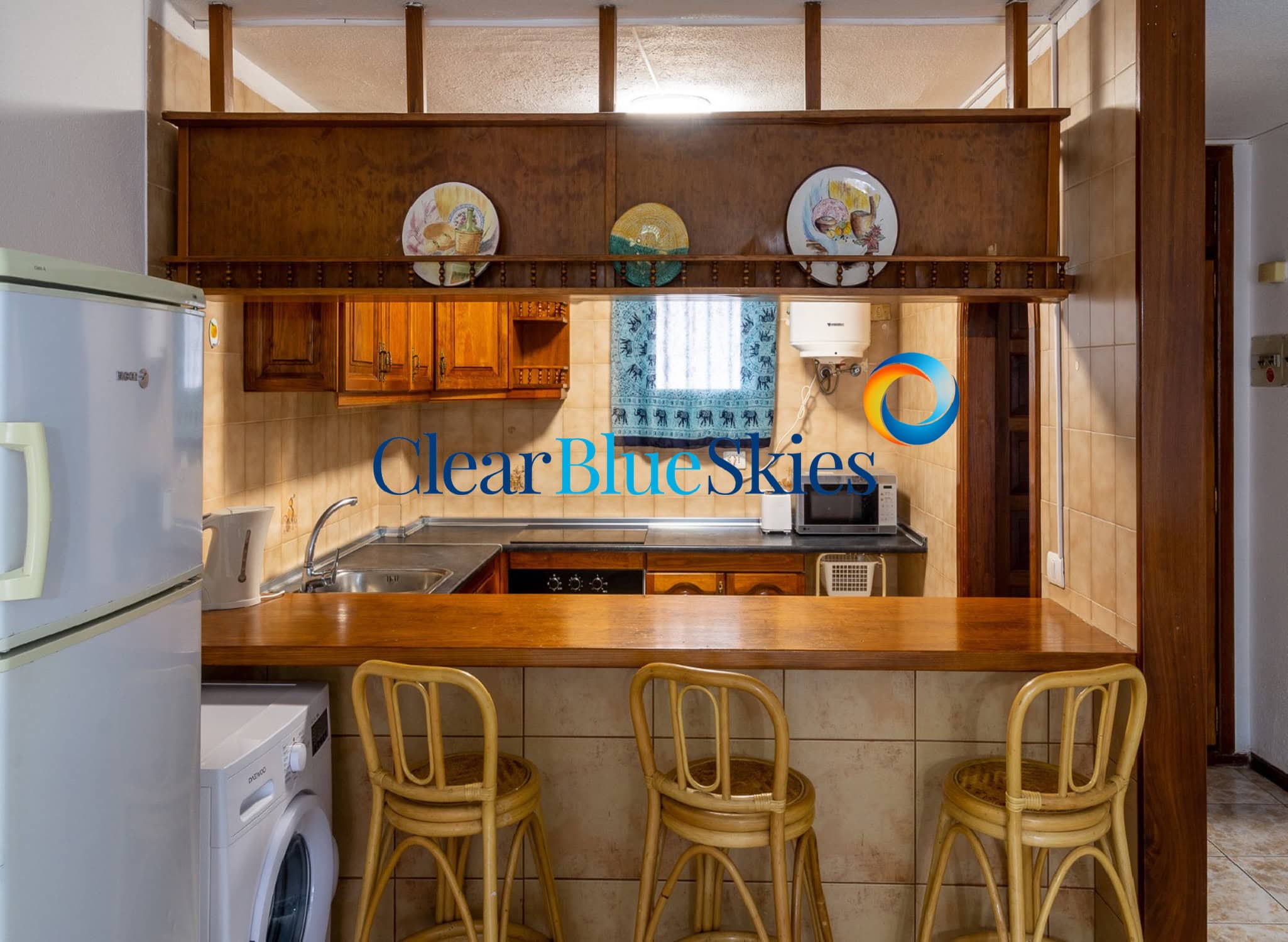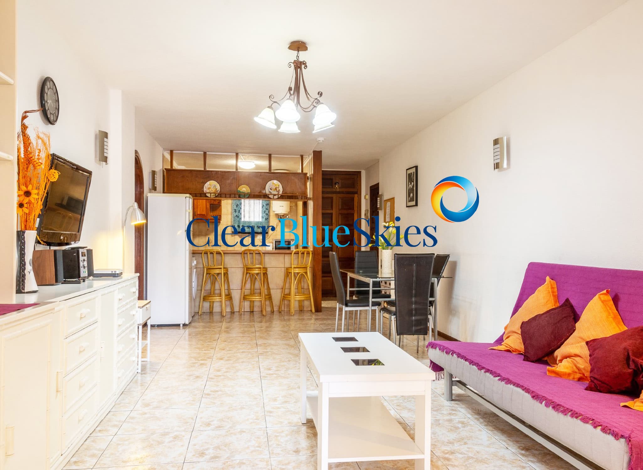 Clear Blue Skies is pleased to present this attractive two bedroom apartment in the absolute heart of bustling Los Cristianos.