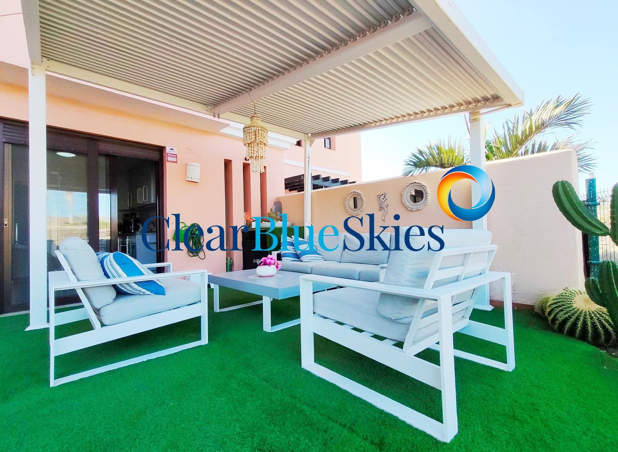 Clear Blue Skies is delighted to present this attractive three bedroom townhouse in the residential Oasis de Fañabé complex in El Madroñal de Fañabé in the South of Tenerife.