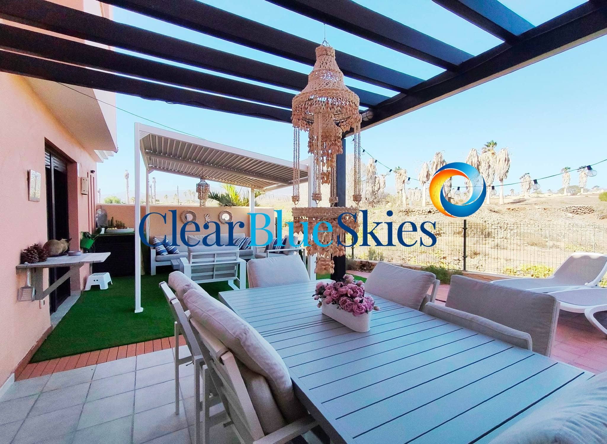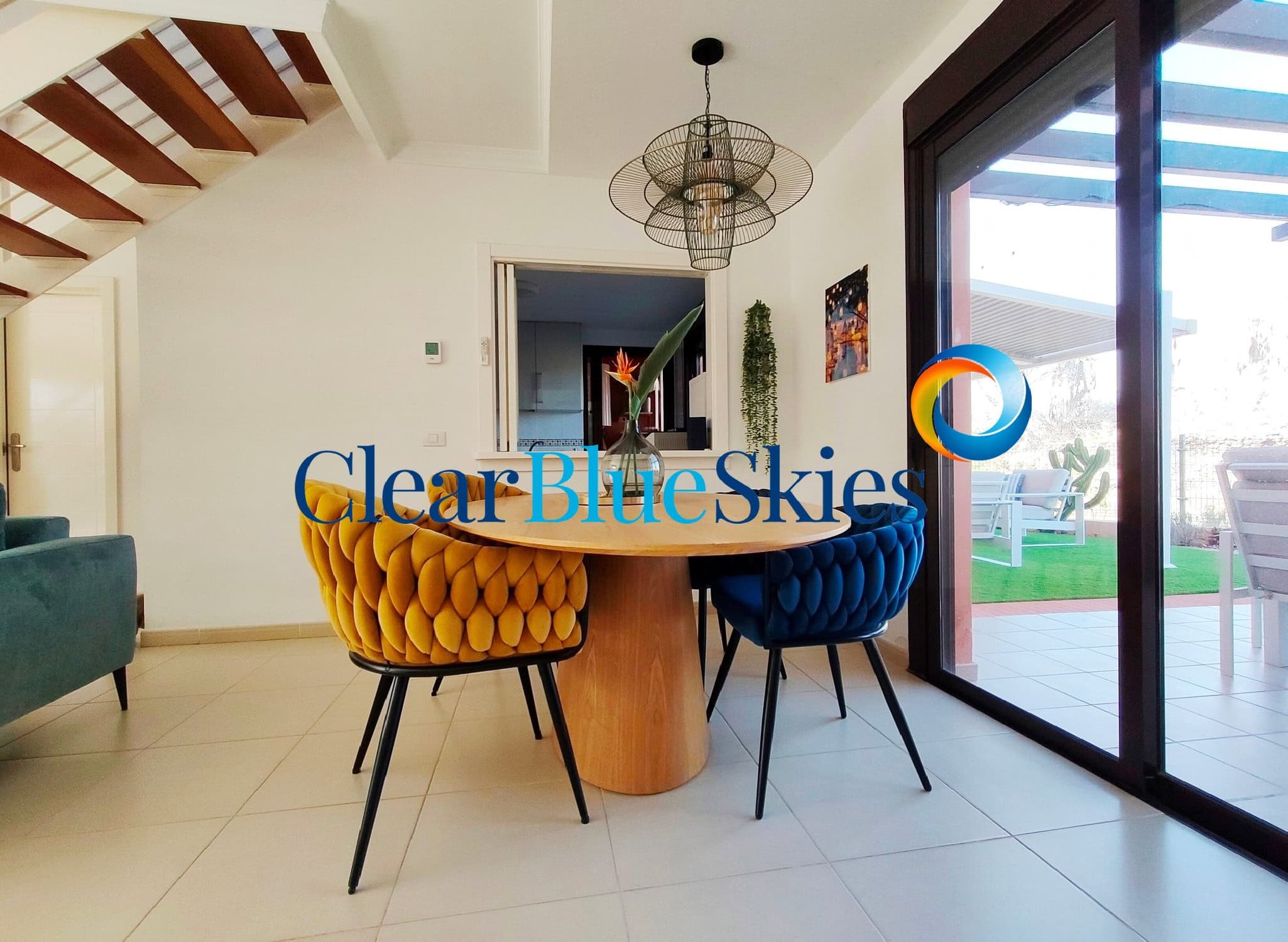 Clear Blue Skies is delighted to be chosen as Exclusive Agents to present this beautiful, spacious, three bedroom and three bathroom linked house in the very popular resort of Amarilla Golf, in the south of Tenerife.