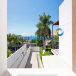 The entrance and main living dining area at ground level is a stylish, light and delicate space, decorated in neutral tones and with a mixture of contemporary and natural materials, working together to create a calm and soothing environment. The kitchen is completely independent with sleek white units and worktops and breakfast seating and at this level can you can also find a guest toilet and an office area. The upper level is reached by a beautiful feature staircase and here you'll find four bedrooms including the impressive principal suite with its en-suite bathroom, dressing room and private balcony with lovely ocean outlook.