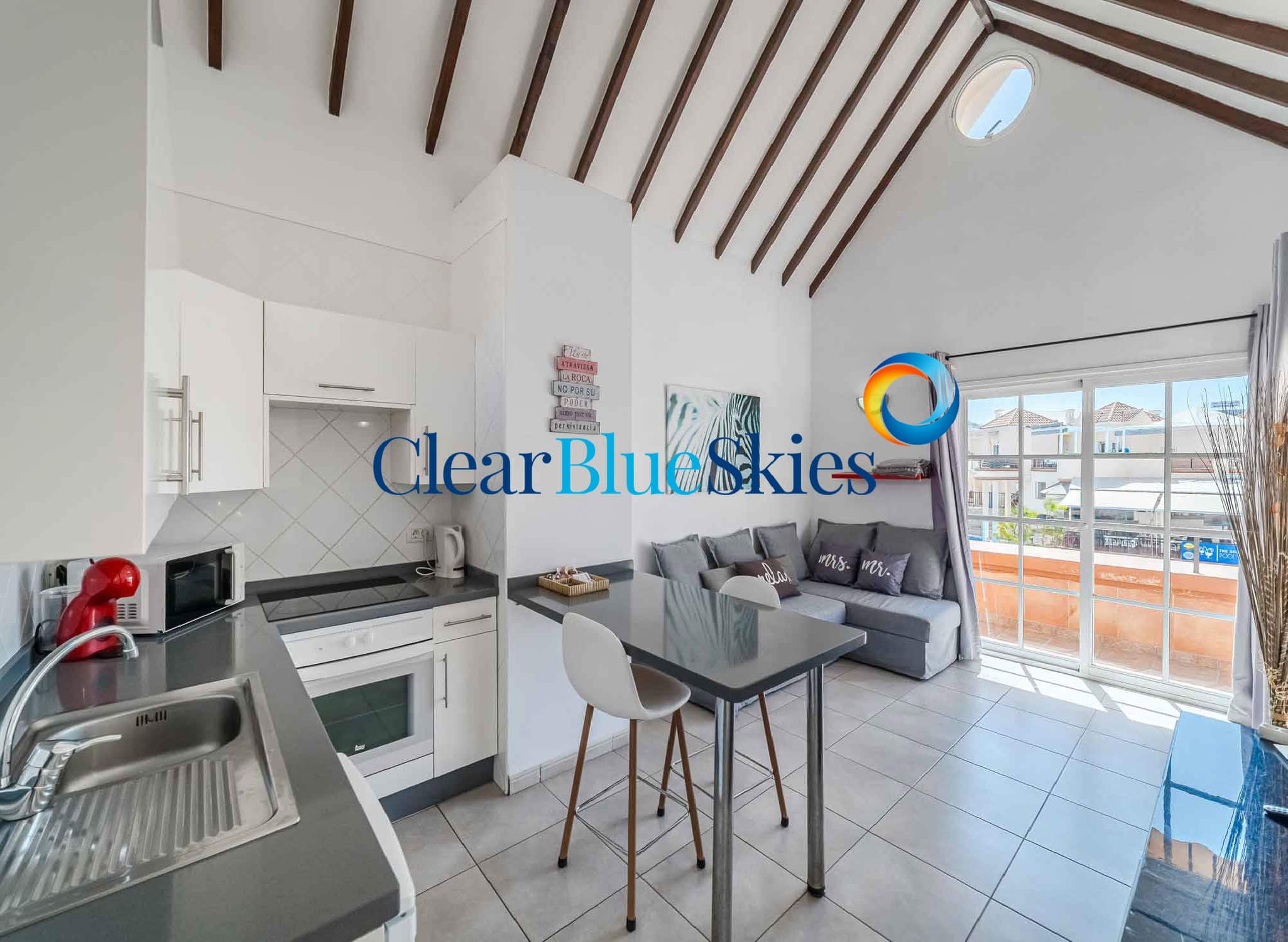Clear Blue Skies is pleased to offer to their clients this recently renovated one bedroom apartment with panoramic ocean views in Los Gigantes, on the sunny west coast of Tenerife.