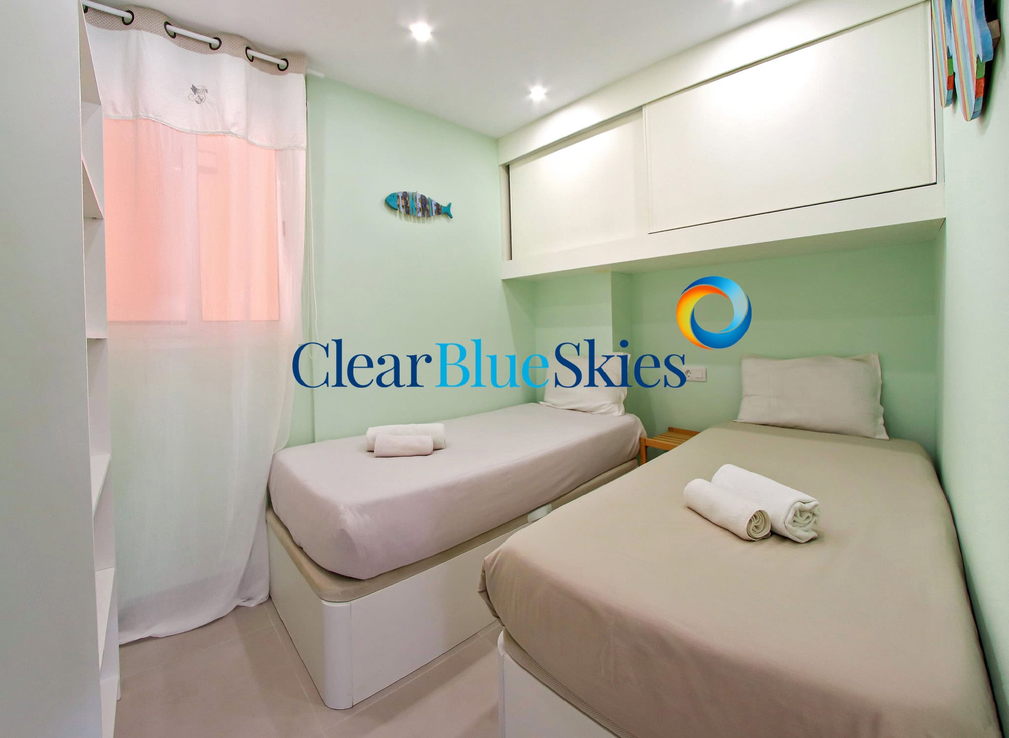 This lovely property has many special features, including retractable sun canopy, aluminium shutters and private parking. Ready to enjoy from the first day, and located on one of the most desirable complexes in the area, viewing of this property is highly recommended by Clear Blue Skies, so please contact us as at our friendly Fañabè office for more information and to make your viewing appointment.