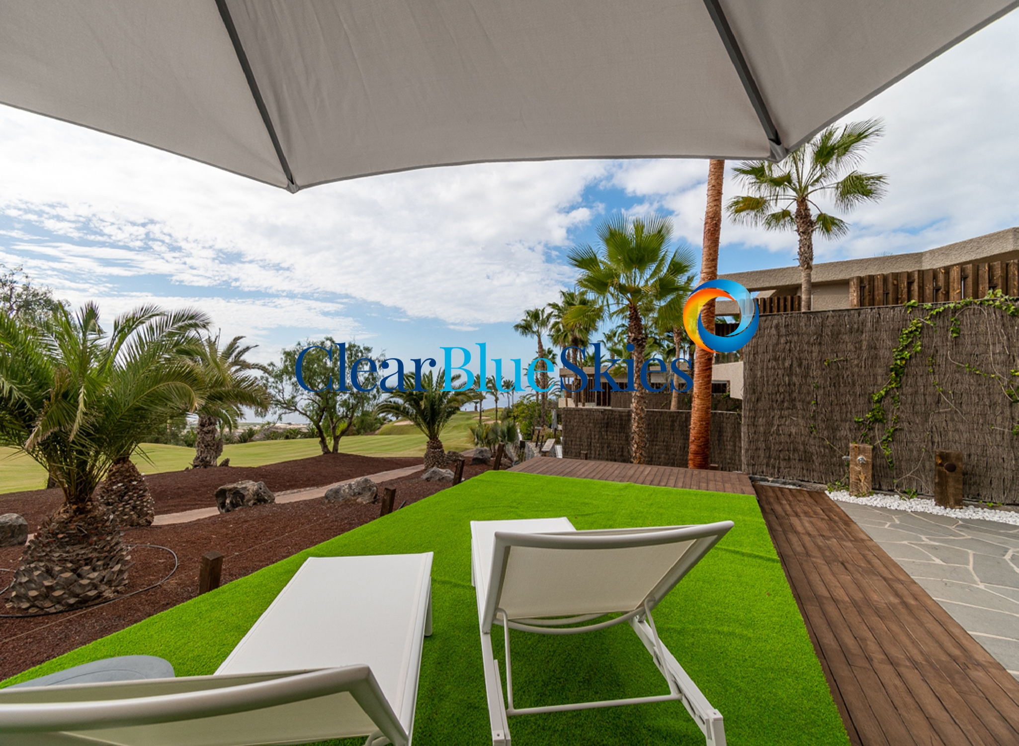 Clear Blue Skies is delighted to offer this beautiful luxury three bedroomed townhouse, on the prestigious Adeje Park complex in La Caleta, in the South of Tenerife.