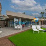 Built all on one level, the entrance area transitions into a large living room with an open, high-quality white gloss, fully equipped kitchen with central island and dining area. The bright living area boasts irregular stone floor tiles which flow seamlessly to the outside area. There are two beautiful double bedrooms with fitted wardrobes plus the master suite which enjoys a stunning en-suite bathroom and dressing area with wood flooring throughout. Two of the bedrooms have direct access to the terrace which is completed with wooden decking surrounding the private infinity style pool, currently covered and used as additional seating area but could easily be removed.