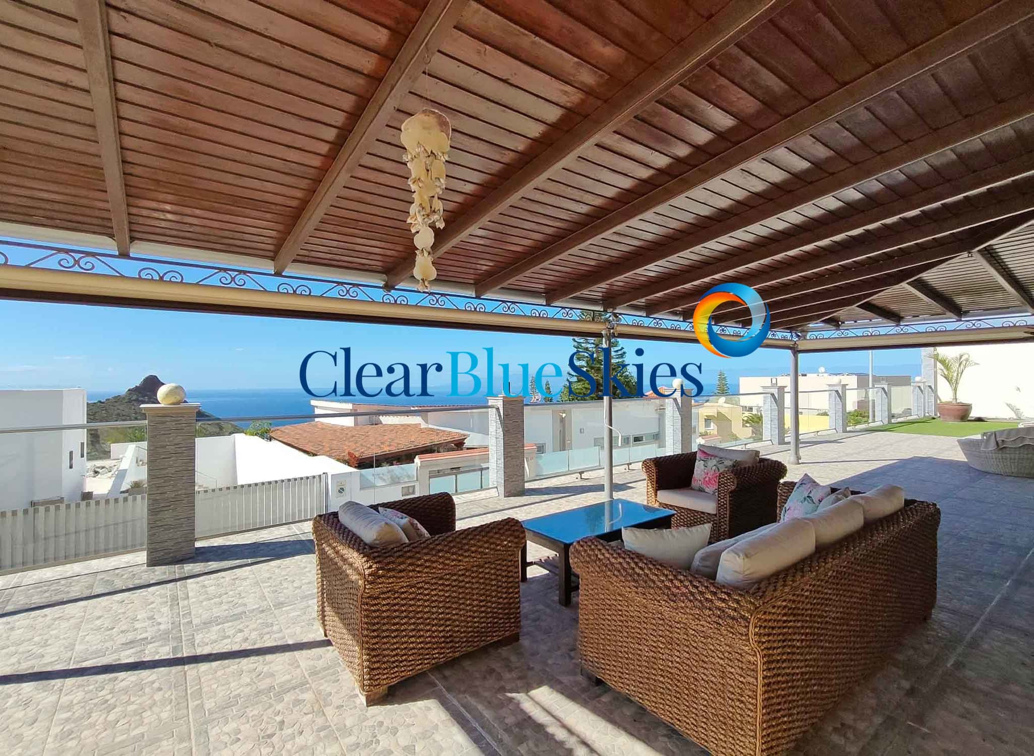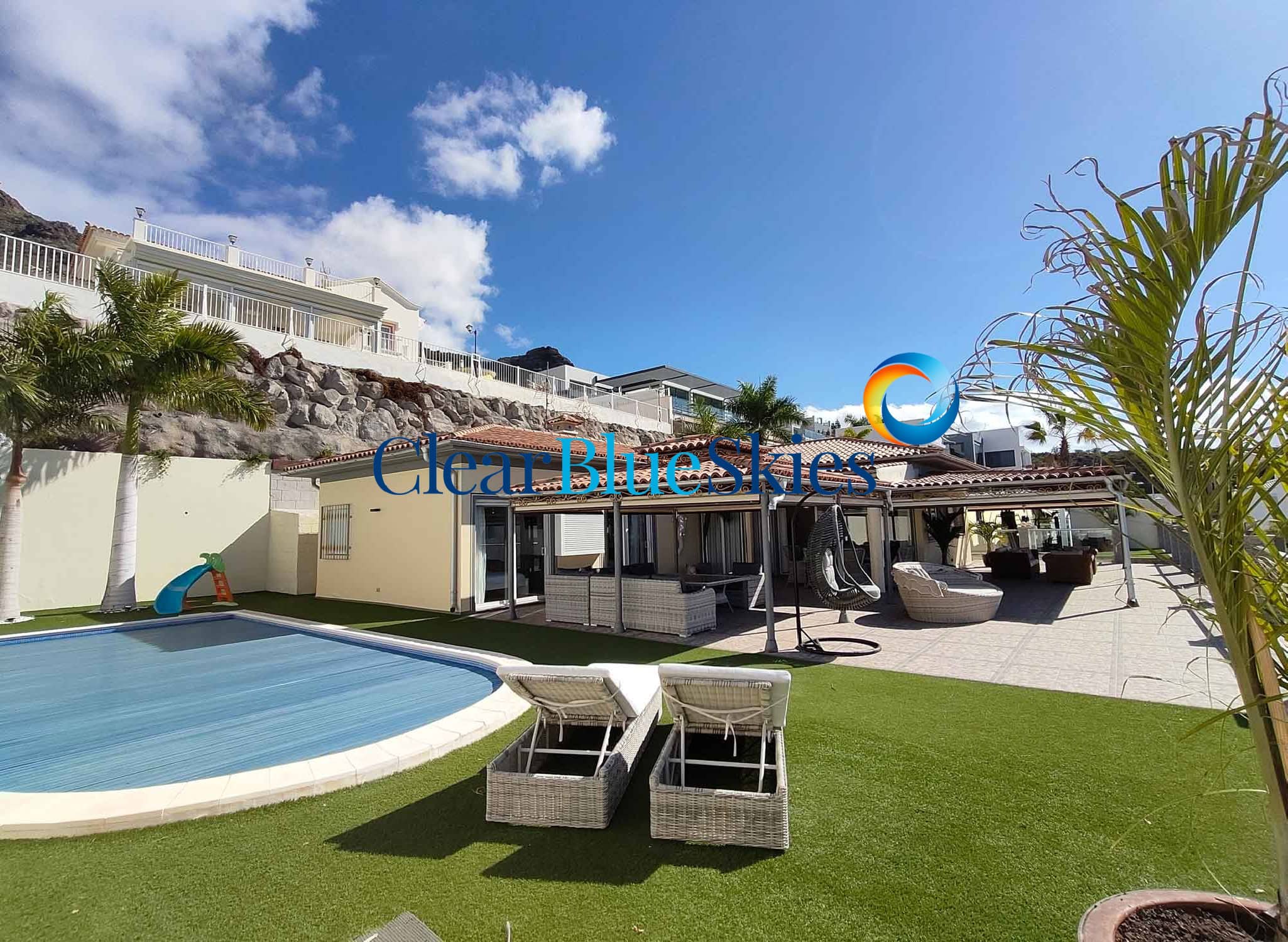 Clear Blue Skies is very pleased to have the opportunity to present this wonderful detached villa with swimming pool, which is located in Roque del Conde, an exclusive area adorned with luxury villas in Torviscas Alto in the south of Tenerife.