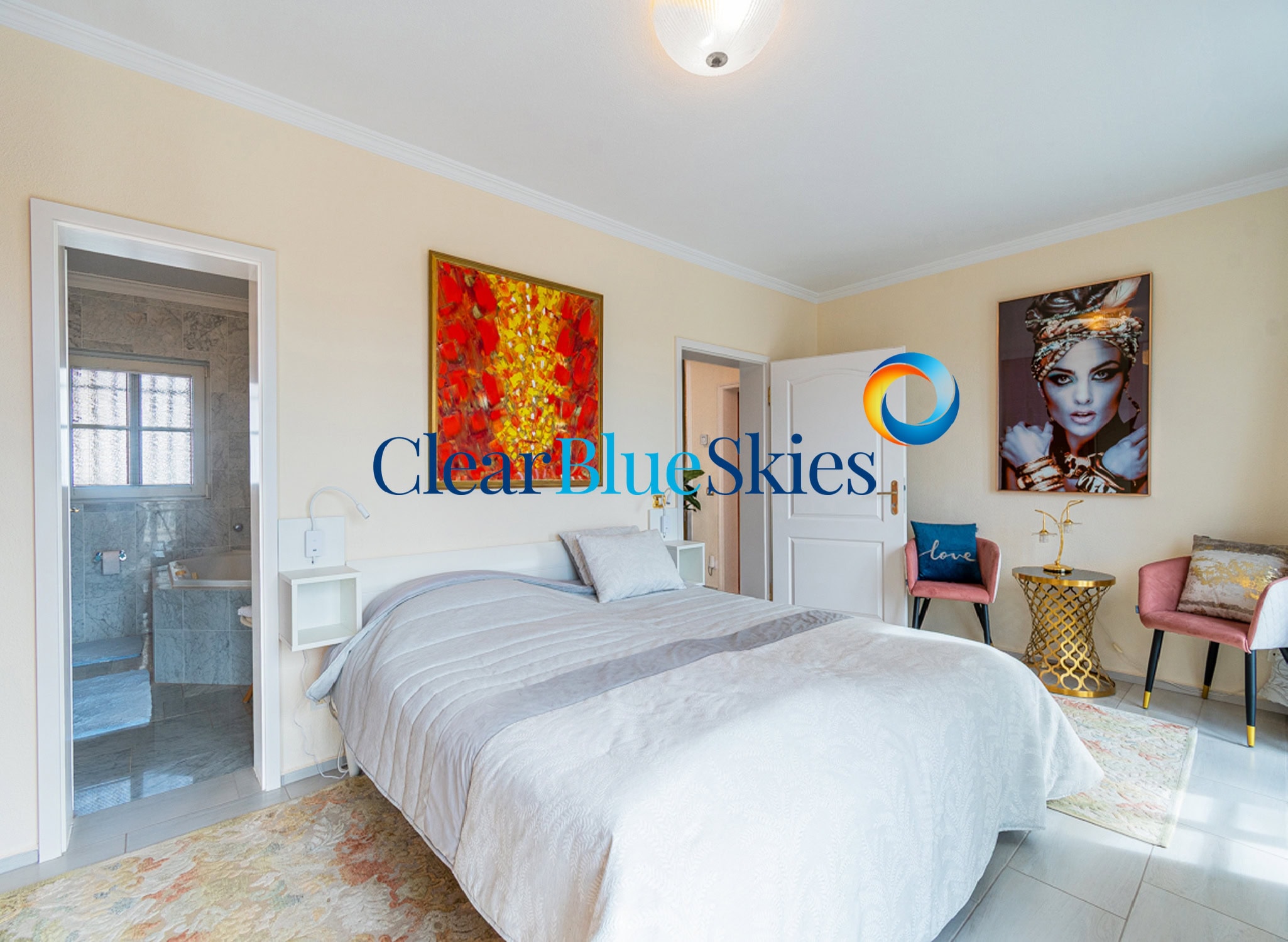 This excellent, south facing, spacious property (190m²) is being sold inclusive of the stylish furniture and is ready to enjoy. This can be a perfect permanent residence or an amazing holiday home and has many special features including air conditioning, security grills, aluminium shutters, solar panels for pool heating and a low maintenance garden. Viewing is highly recommended by Clear Blue Skies, so please contact our friendly office in Fañabé Plaza at your earliest convenience for more information and to make arrangements for an accompanied viewing.