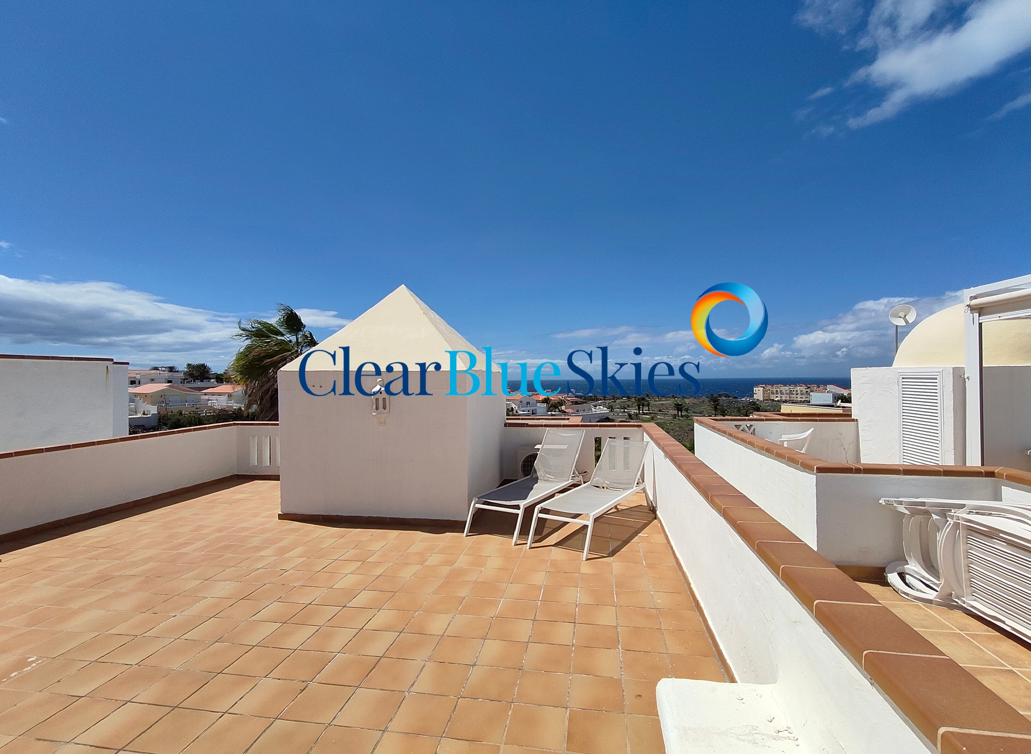 Clear Blue Skies is pleased to offer this lovely two bedroom duplex penthouse, situated in the much sought after Parque Tropical complex in Los Cristianos.