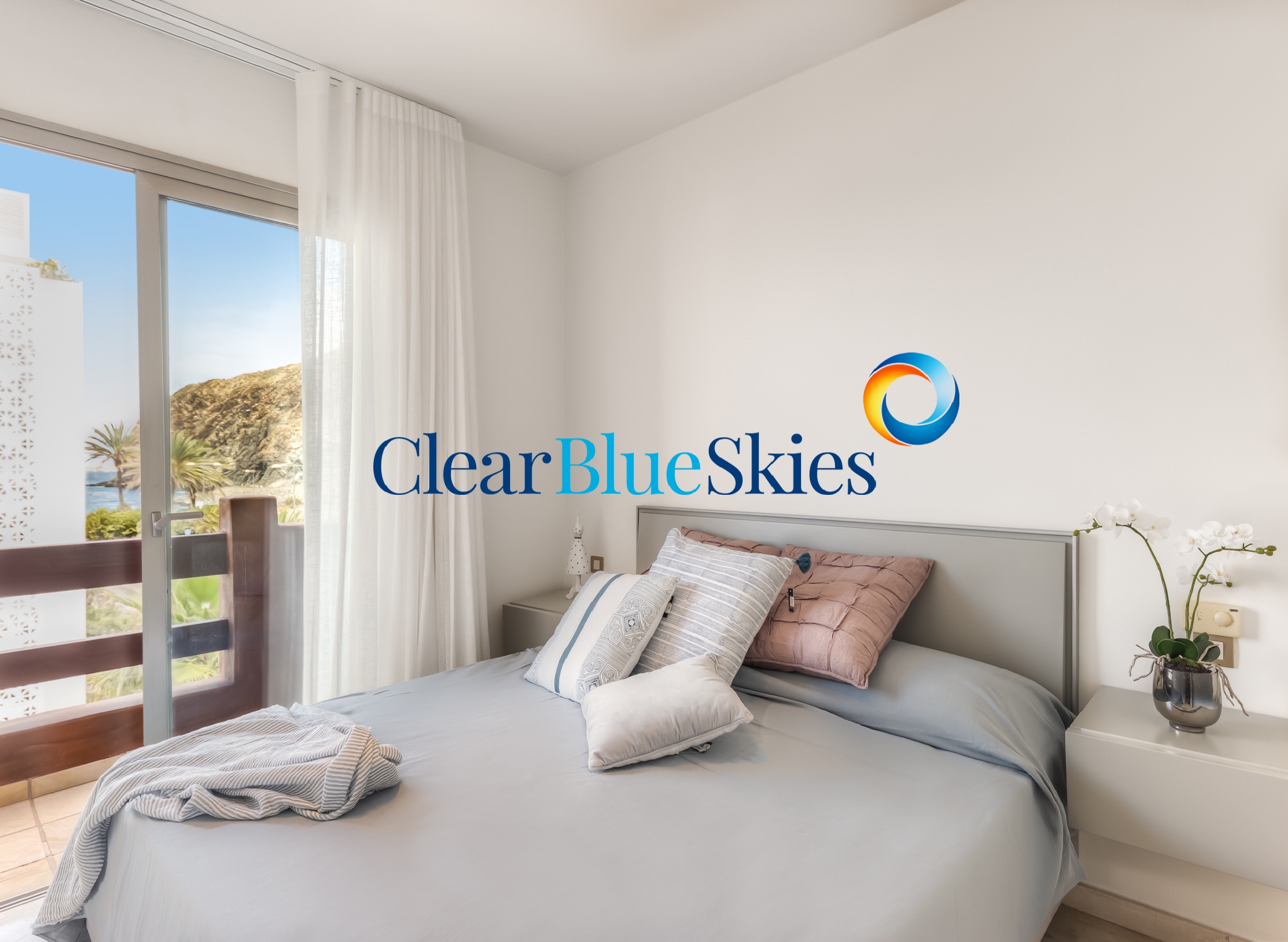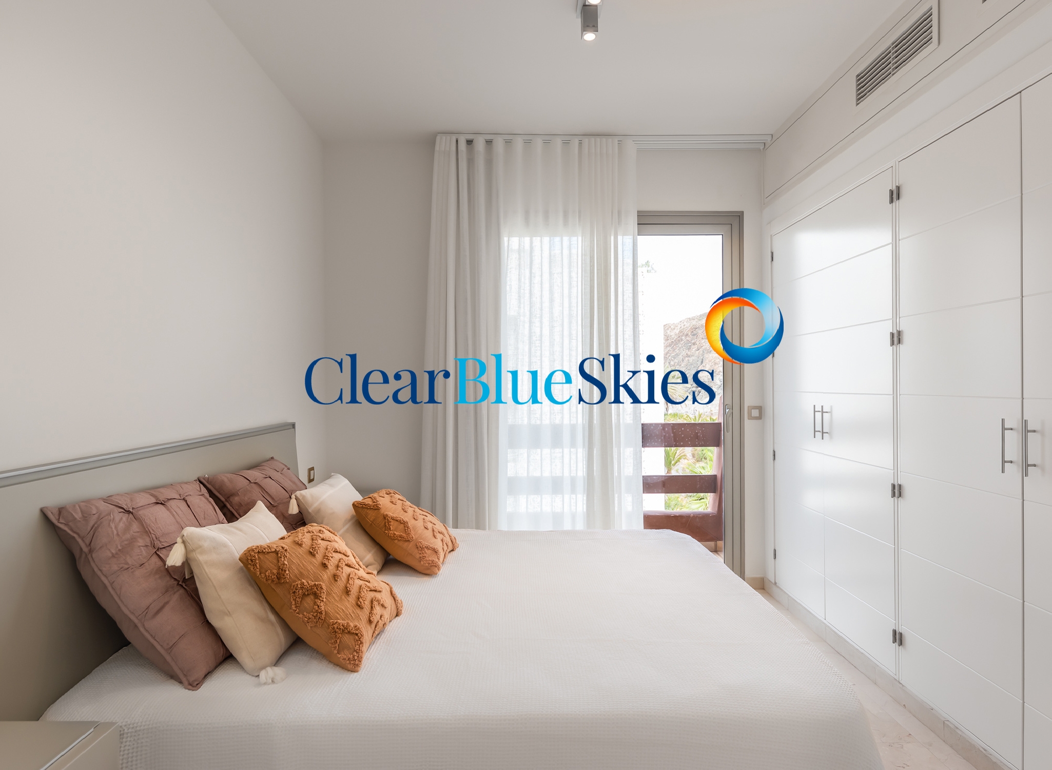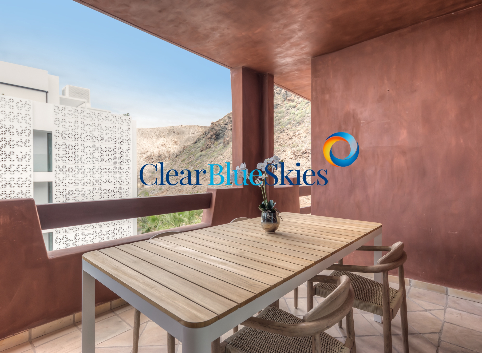 Clear Blue Skies is pleased to present this incredibly stylish three bedroom apartment with panoramic views on the luxurious and perfectly positioned Playa de los Menceyes complex in Palm-Mar.