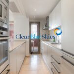 This incredibly spacious apartment measures nearly 130m² internally with a further 53m² of terraces, and is located in an enviable corner position on the second floor. It has been recently renovated throughout and is large and bright, featuring a sleek white kitchen with integrated appliances and convenient access out to the outside area where the dining terrace is located. The living dining room is comfortable and tastefully decorated in neutral tones adding to the calm, relaxed feel of the property, whilst the three double bedrooms all have fitted wardrobes and each with its own corresponding en-suite bathroom. The internal area is completed with a guest WC and useful storage and laundry area.