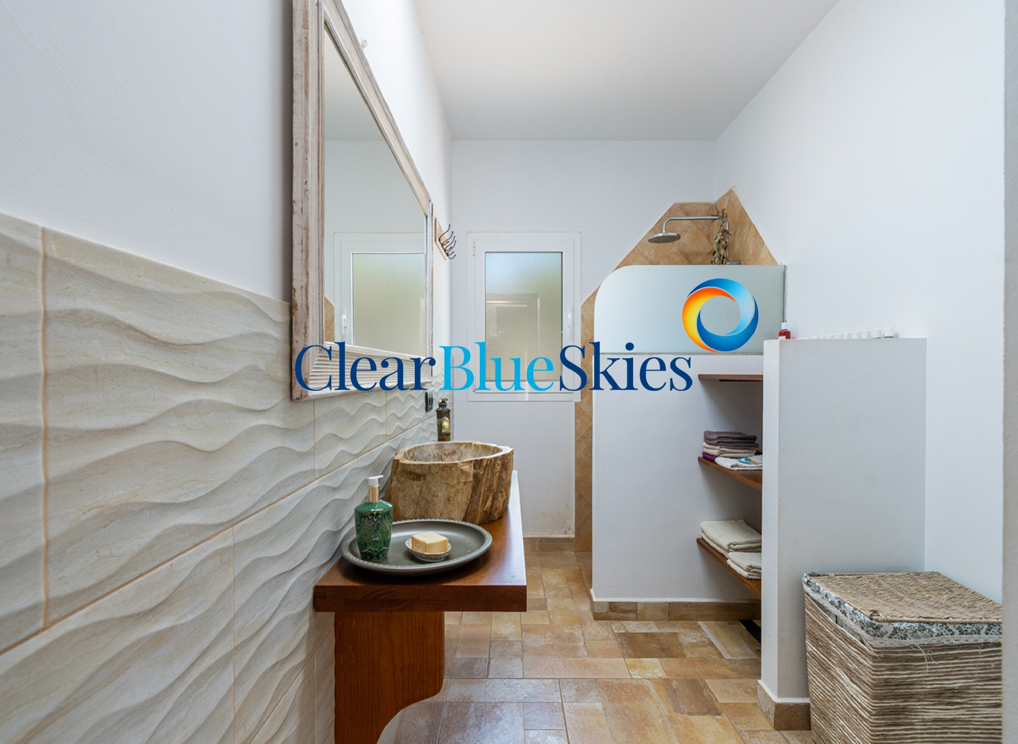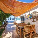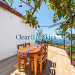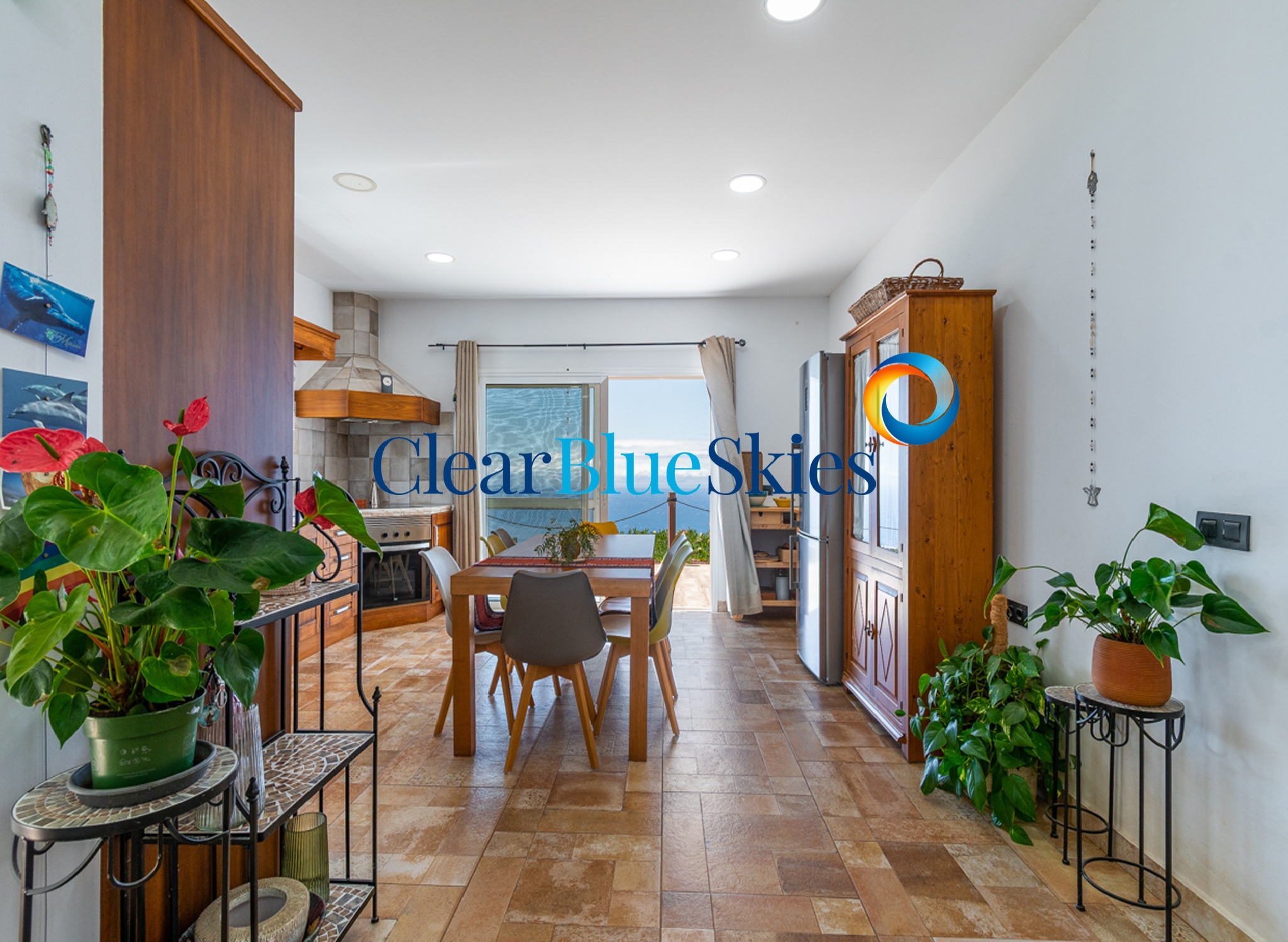 The property features a charming single-level rustic house of 138m², thoughtfully designed for comfortable living. Inside, there are three spacious double bedrooms, each with direct access to the terrace, allowing for seamless indoor-outdoor living. At the heart of the home is an open-plan dining kitchen and lounge area, perfectly positioned to take full advantage of the spectacular, uninterrupted sea views. Large openings flood the space with natural light and connect effortlessly to the outdoor terraces. Two shower rooms complement the accommodation.