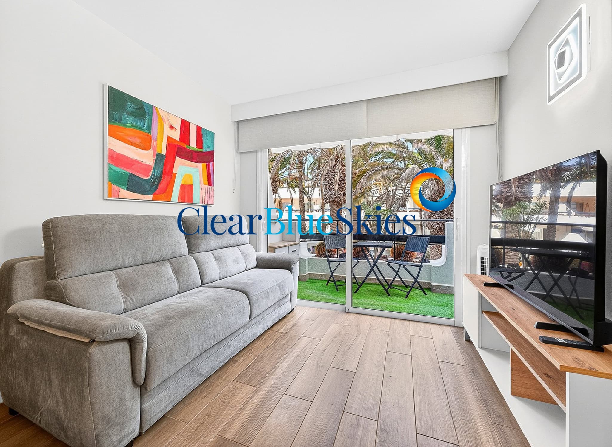Clear Blue Skies is very pleased to present this lovely fully renovated studio apartment located in the very popular, front line Club Villamar complex. Club Villamar is located very close to the marina of Puerto Colon, the Fañabé beach of Playa la Pinta and all of the amenities of the surrounding area of San Eugenio Bajo.