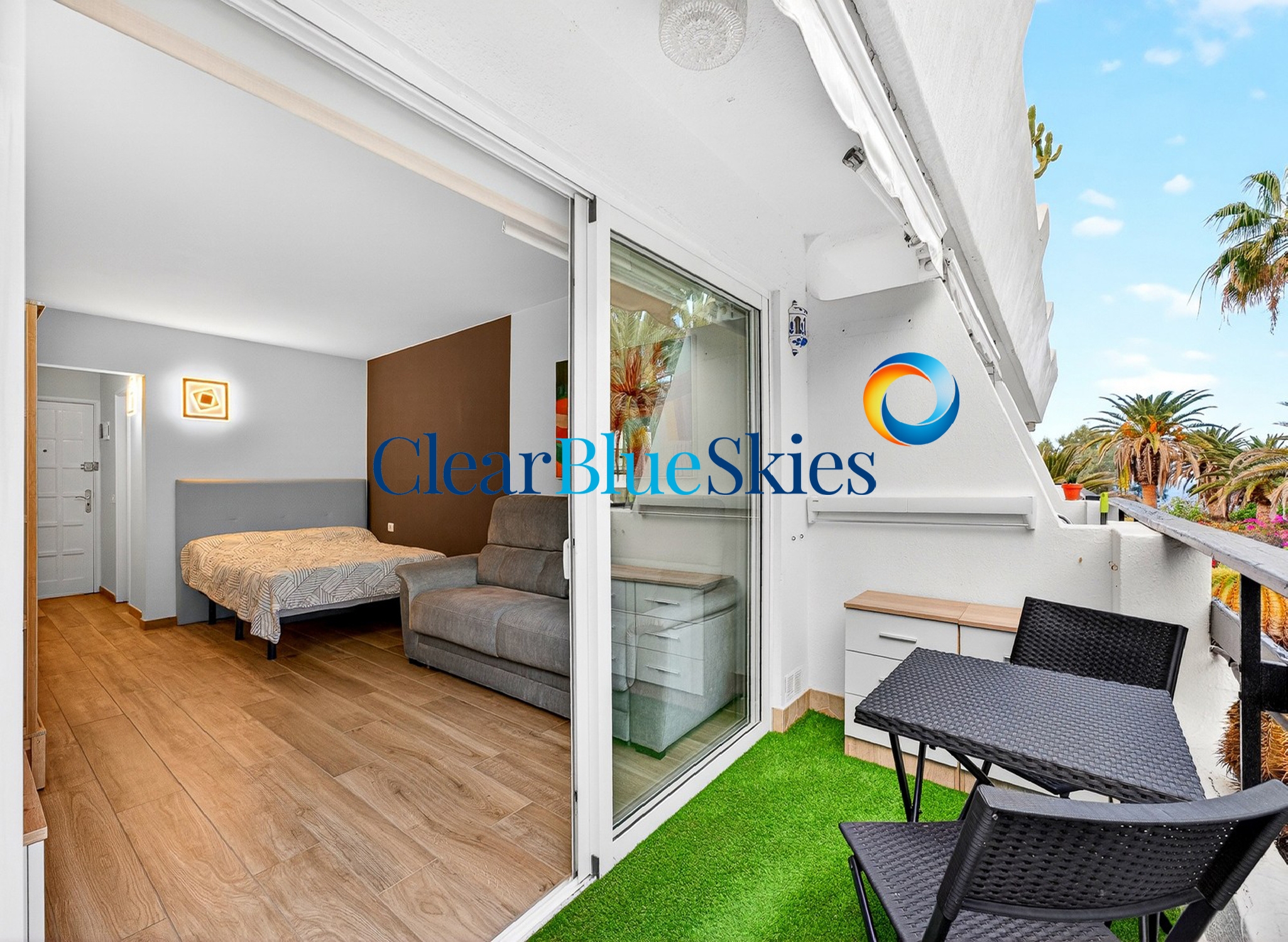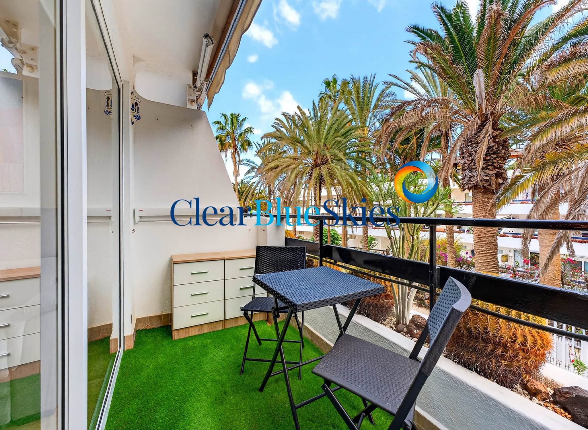 Clear Blue Skies is delighted to be chosen as the exclusive Estate Agent to present this perfectly positioned studio apartment in one of south Tenerife’s favourite complexes, Santa Maria, in San Eugenio.